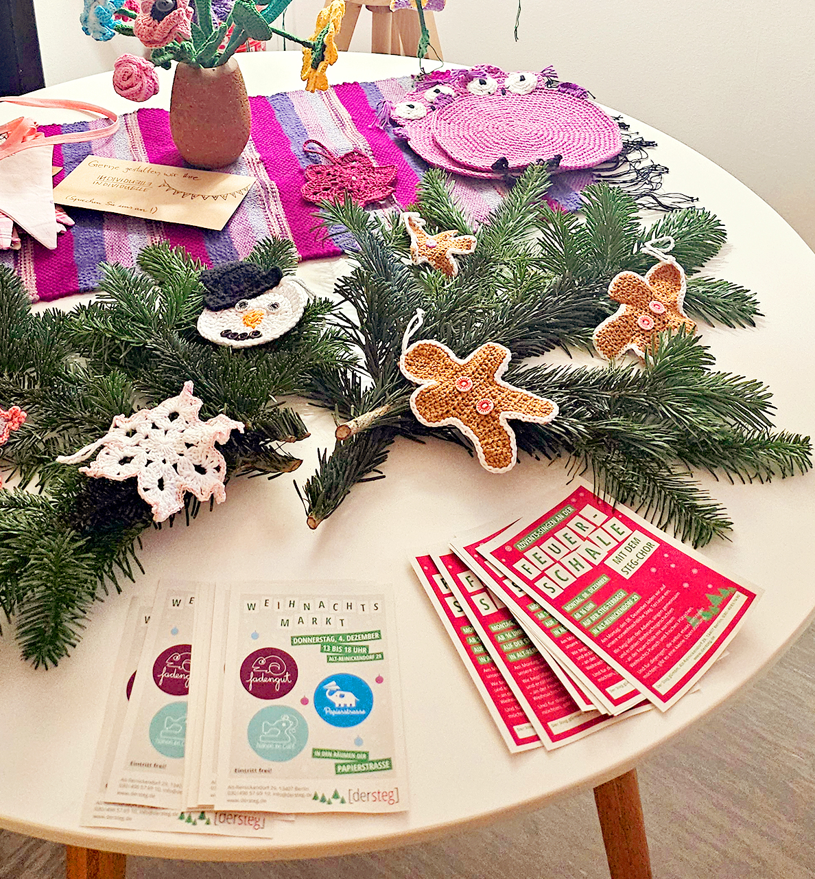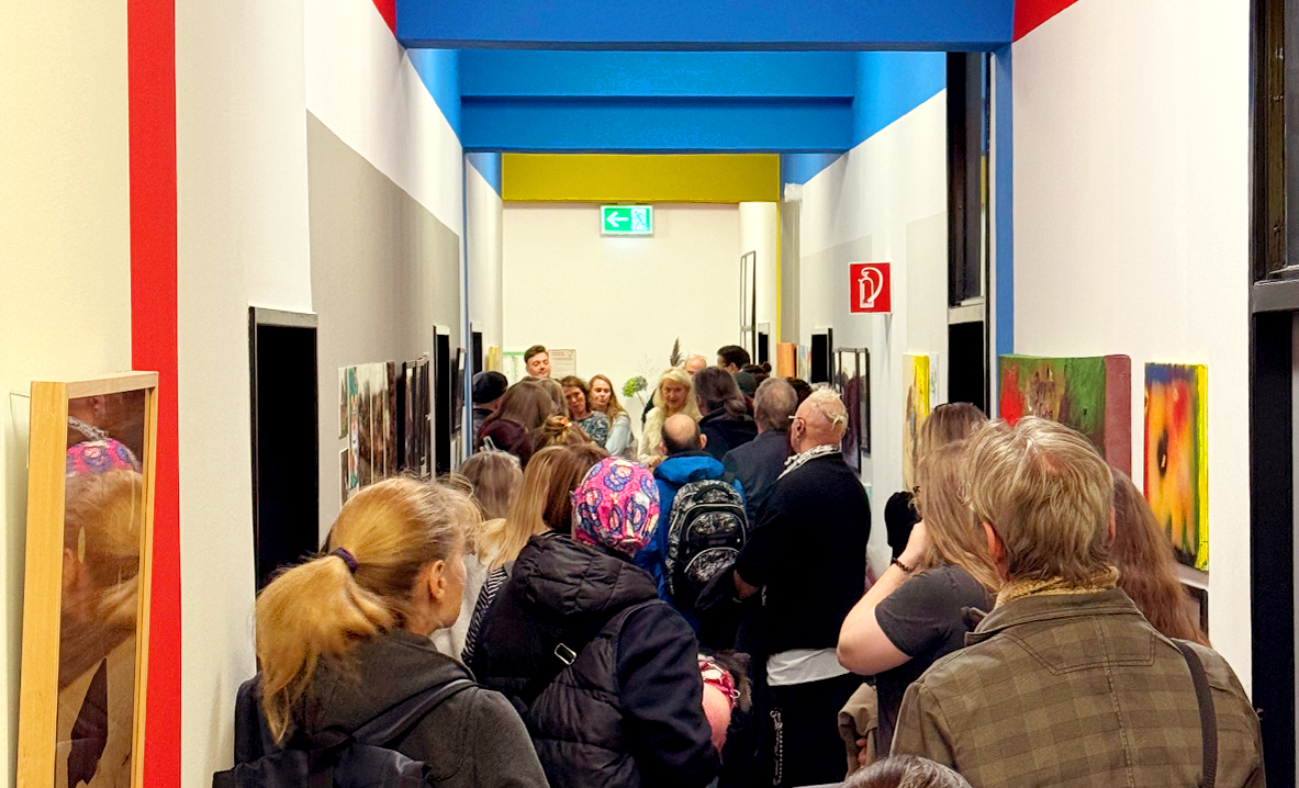 Der Flur war voll, das Interesse groß. Und das Staunen noch größer. Zweihundert Werke von knapp sechzig Künstler*innen sind zu bestaunen. Alle sind entweder Klient*innen oder Mitarbeiter*innen des Stegs. Die gezeigten Werke reflektieren eine vielfältige Auseinandersetzung mit Lebensrealitäten, Träumen und Herausforderungen.