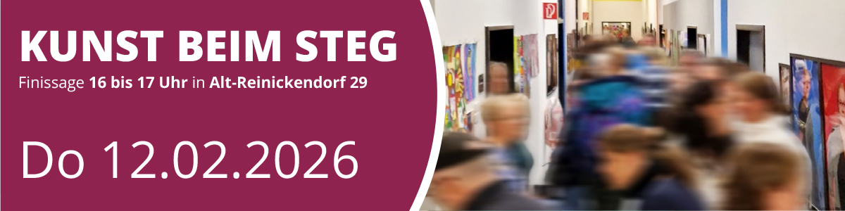 Wann 12. Februar 2026 16 bis 17 Uhr / Wo Alt-Reinickendorf 29 / Was Finissage zur Kunst-Ausstellung „Kunst beim Steg“ mit Kunst von Mitarbeiter*innen und Klient*innen